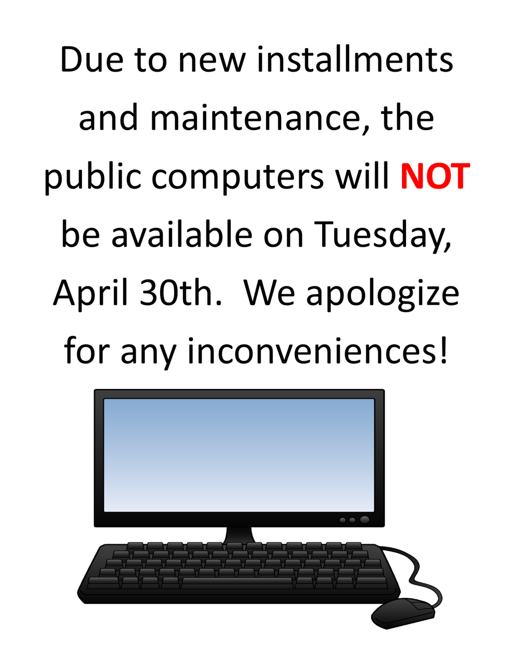 Public Computers will not be available this day!